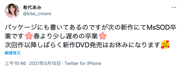 真的很可惜,以之前经纪公司的作风,希代あみ(希代亚美)如果要休业的话他们会想办法让她到台湾做个活动,也算是另类的渡假打工;只是现在疫情严竣,别说日本了连台湾的状况都不太妙,我们也只能眼睁睁地看这位身材很暴力的女孩去休息了〜