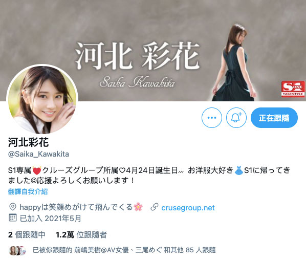 再加上twitter一天追踪破万,河北彩花甚至连张照片都没发,我只能说可怜啊,其他女星完全被压在地上摩擦啊〜