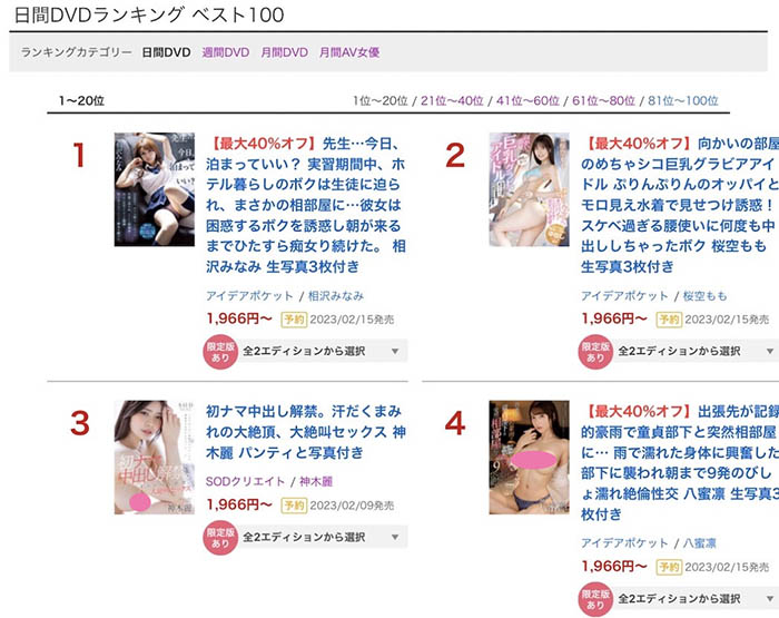 据FANZA内部的人说有可能是有人利用订货完退货然后再订货再退货这样的循环替相沢みなみ(相泽南)冲榜,但玩这套人最后还是没有买片所以相沢只有在日间榜很强,到了月间榜就回归正常,虽然还是蛮优秀的但不是最优秀ー如果真如对方所言,那我真的希望爱她就是支持她,与其玩这种游戏让相沢开心,不如实质照顾她让她不论什么榜都能立于榜首,对吧?