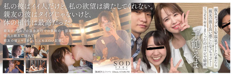 「千鹤えま(千鹤惠麻)」近日推出了新作「亲友カップルとW温泉デートに来たら亲友の彼と良い感じになっちゃって…こっそりヤリまくったのはマジで秘密。」,在片中她是个星活泼可爱的混血巨球妹,和好友一起进行了温泉Double date,由「千鹤惠麻」的男友开车,载着大家到温泉旅馆去旅行。到了目的地后,两个女生玩得很开心;「千鹤惠麻」的好友更是和男友「小登」常常放闪,相较之下,「千鹤惠麻」和男友的感情就显得很平淡…