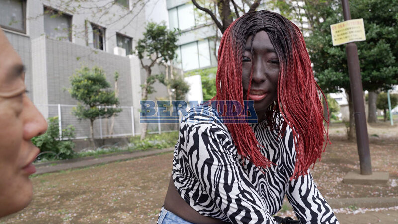 这人不是别人,正是宝田もなみ(宝田萌奈美),她把自己涂得黑漆漆的在街头被搭讪当然不是因为她有不为人知的癖好而是剧本这么写ー如果你要问女星这样的作品和之前的有什么不同,我想宝田会回答你化妆和卸妆要花很多时间,因为在片中她有去洗澡,涂在她身上的染料并没有掉色,处理起来应该很麻烦〜