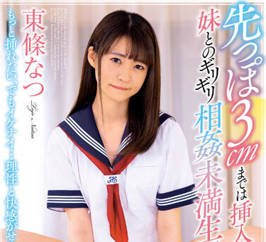 同系列孪生姊妹片「先っぽ3cmまでは挿入させてくれる妹とのギリギリ相奸未満生活」则是由《东条夏》(东条なつ)出演妹妹一角。光是看她一身JK穿着就足以硬爆,更不用说以青春嫩体做色色的事,更是让人兴奋到腿软。
