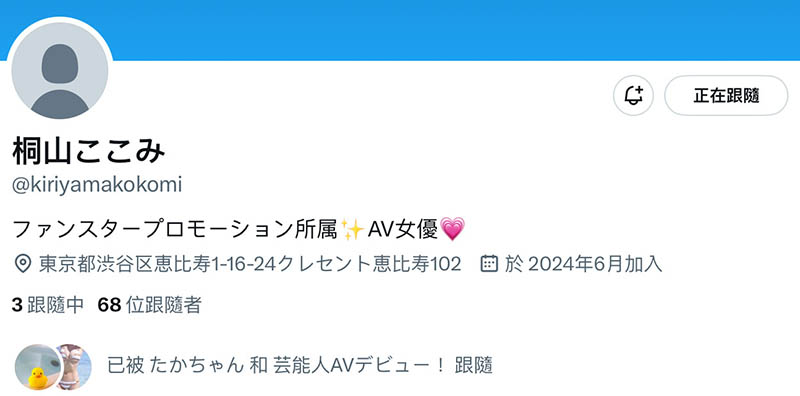 女星名:桐山ここみ(桐山心美,Kiriyama-Kokomi)