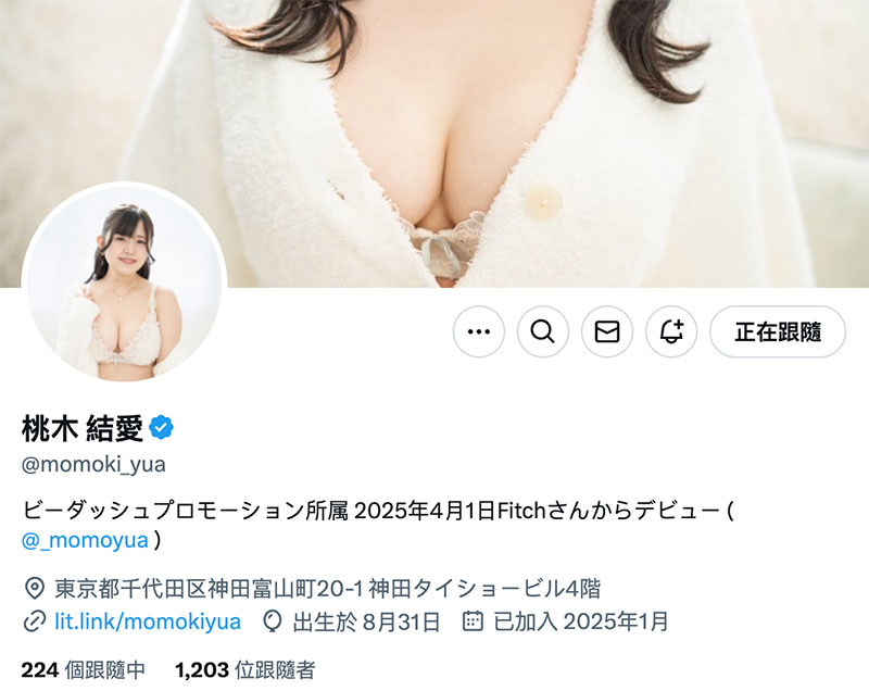而且她的社群很好找喔,在X上输入她的艺名就可以找到她的帐号(),经纪公司ビーダッシュプロモーション(B-Dash promotion)所属,这不就是下个礼拜要来台湾和我们一起举办一番赏的「美园和花」的经纪公司?所以只要她表现好的话、也许明年有机会在台湾合作?